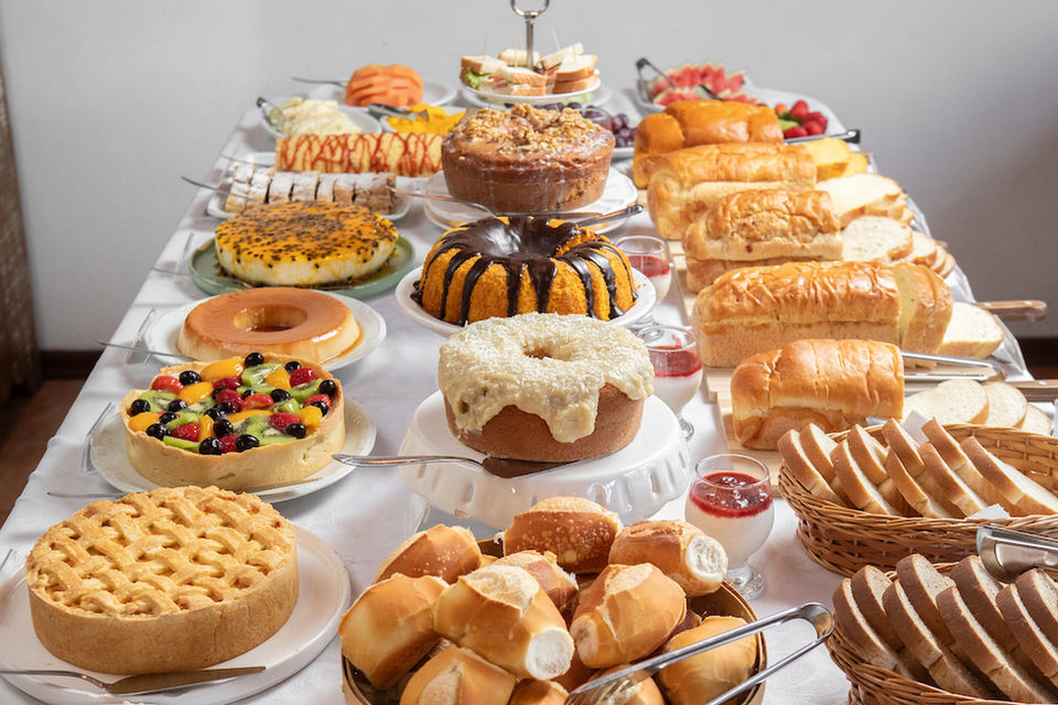 Quando se trata dos nossos bolos, garantimos que eles sejam assados na hora para que você possa saboreá-los ainda quentinhos e cheios de sabor. E se você está procurando uma opção mais saudável, não se preocupe, oferecemos uma grande variedade de frutas frescas, geleias, iogurtes e cereais para que você possa começar o dia de forma nutritiva e deliciosa. Estamos sempre procurando oferecer opções variadas para atender a diferentes gostos e necessidades, então fique à vontade para escolher seus favoritos e desfrutar de um café da manhã completo e balanceado. Esperamos te receber em breve para uma experiência gastronômica única!