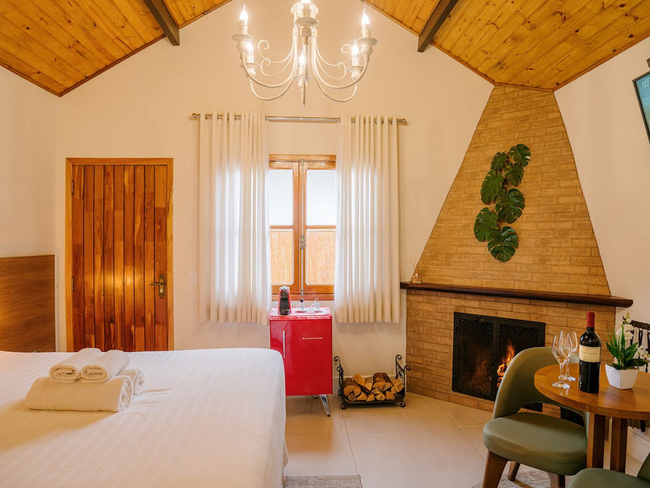 O Chalé Capri, com sua lareira acolhedora e banheira de hidromassagem relaxante, oferece uma atmosfera perfeita para momentos de descanso e romantismo. O ambiente é climatizado, com sistema de aquecimento e uma cama box queen size garantindo noites de sono tranquilas e aconchegantes. Abrace o conforto e permita-se desfrutar de momentos especiais neste chalé exclusivo.